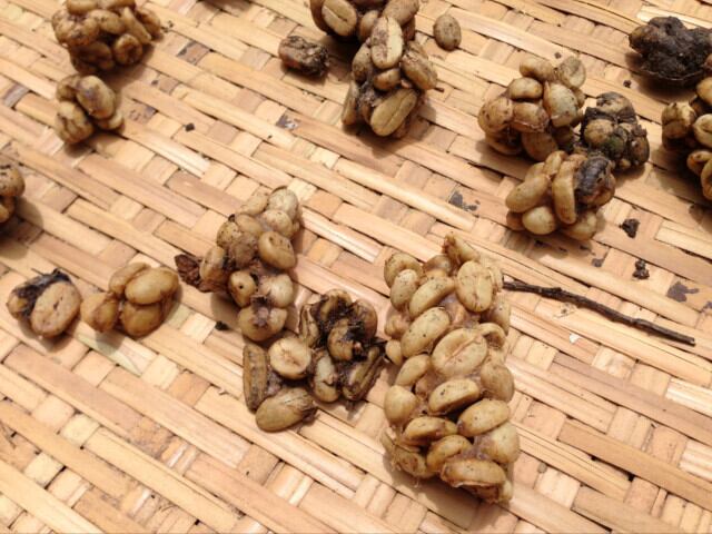 真っ赤に熟したコーヒー豆は彼らの好物であり、そのために熟度の高い果実が集まることとなります。そういう意味ではごく自然に選別摘果が行われていると言えるかもしれません。そうして彼らによって選別された完熟チェリーは消化管を通る間に酵素反応を起こし、それによってあたかも麝香の様な秀逸な苦みとフレーバーが生み出されるのです。